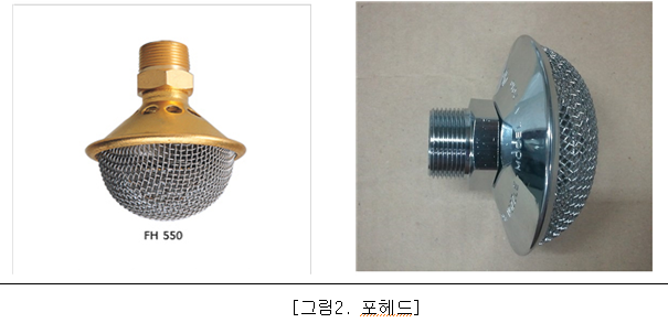 헤드는 포 방사 시 공기흡입구에서 공기를 흡입하여 헤드 그물망에 부딪친 후 포를 발생한다.